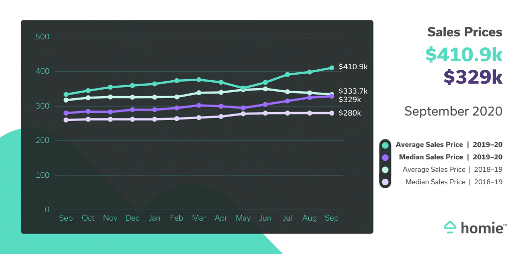 At $410.9K, sale prices are rising. This is a +23.1% increase from last September and a +3% increase from August of this year. At $329K, median sale prices also rose with +17.5% increase from September 2019.