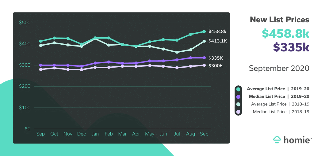 September list prices saw a +11.1% year-over-year increase, landing at $458.8K. At 335K, an +11.7% increase from September 2019, median list prices are also high.