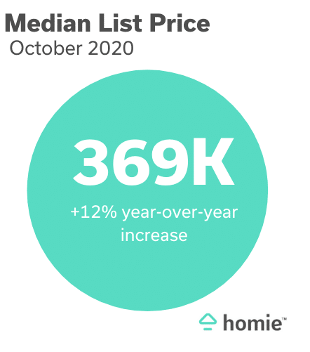 It’s not just inventory that’s rising, but list prices are rising in Utah, as well. October’s median list price was $369K, a +12% year-over-year increase.