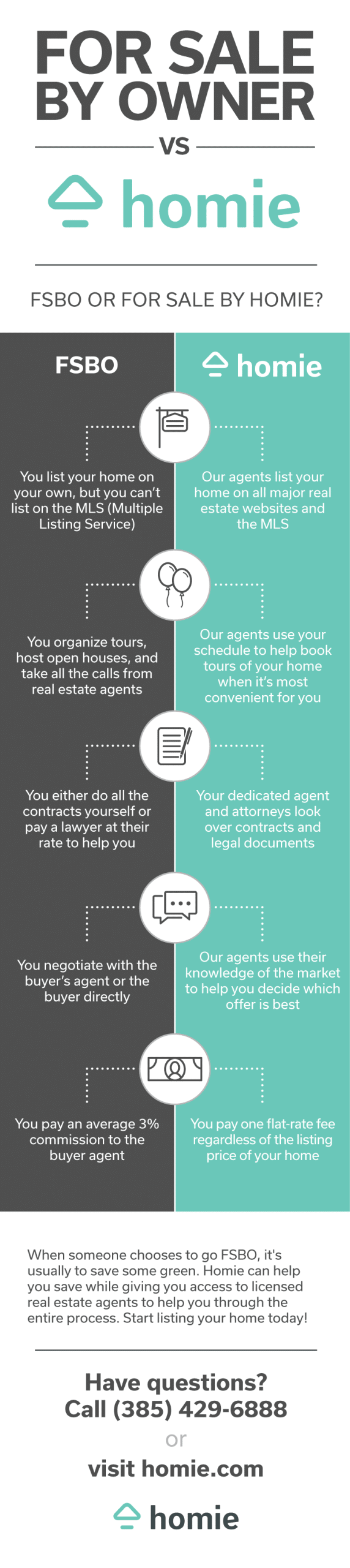 If you want to sell a home on your own, we applaud you for trying to save all that money on commissions! In fact, one of the reasons Homie was founded was because we realized that home buyers and sellers naturally do a lot of the work on their own. Homie was created because we found out that consumers want control of the transaction but don’t necessarily want to do all the heavy lifting on their own. In addition to more control within a transaction, no one wants to pay fat 6% commissions. With Homie you get a dedicated local agent, a low fee to sell, and more control and transparency in the process. Who said you can’t have your cake and eat it too?
