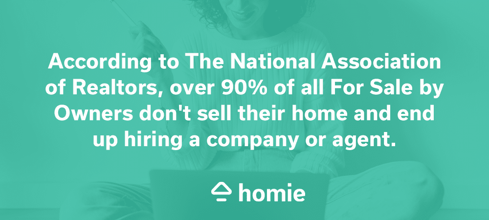 For Sale by Owner is not widely recommended for most sellers, but there are still plenty of homeowners who go down this path. According to The National Association of Realtors, over 90% of all For Sale by Owners don’t sell their home and end up hiring a company or agent.